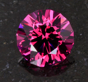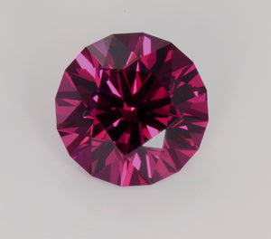 This extra-ordinary gem is from the Umba River Valley in Tanzania for which it is named. This extra-ordinary gem weighs 11.21 carats with ideal cut and VS clarity. Umbalite is a color variation of rhodolite garnet and rarely comes in this size. Also rare are large round brilliants. This umbalite measures 13.7 millimeters by 9,1 millimeters deep.