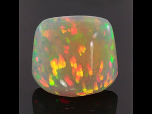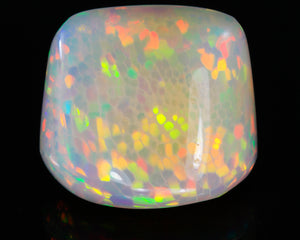 One 48.48 carats freeform opal from Welo Ethiopia, cut grade excellent, measuring 28 mm wide, 25 mm long, 12.5 mm deep with honeycomb pattern. Cut by Steve Moriarty. Extremely large size for opal from any source. Pits in the underside of this opal are natural and to be expected.