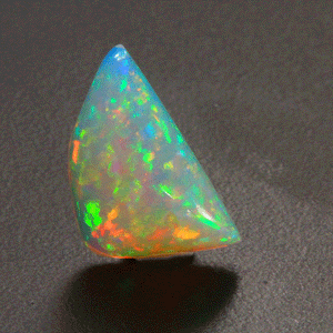 One 7.09 carats freeform cabochon opal from Welo Ethiopia, cut grade very good, measuring 11.4 mm wide, 17.7 mm long, 7.5 mm deep; with very good polish and very good symmetry.